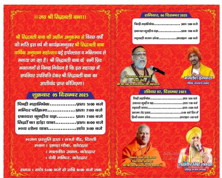 Kotdwar, Uttarakhand – The sacred city of Kotdwar is preparing for one of its most cherished annual events — the Shri Sidhbali Baba Annujaan Mahotsav, popularly known as the Sidhbali Mela, scheduled from December 5 to 7, 2025. Celebrated with deep devotion and cultural enthusiasm, this three-day festival attracts thousands of devotees who come to…
